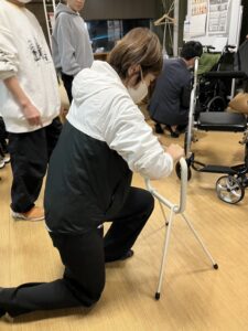 最新の用具から、変わり種、大阪ならではのものなど、多種多様な用具を持ってきて頂き、参加者の方に実際に使い心地などを体験してもらったり、あの利用者さんにちょうど良いよね!